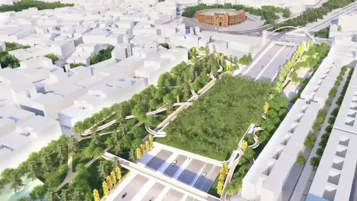 El anteproyecto, sin embargo, sustituye el diseño de malla presentado inicialmente por el de unas pasarelas que enlacen tanto el parque como la zona deportiva paralela a la calle Antonio Pirala, en la parte de Ciudad Lineal. En total habrá ocho caminos que se conecten con la superficie de la losa de cubrición, permitiendo una percepción “a vista de pájaro” -dice el Ayuntamiento- entre las copas de los futuros árboles.