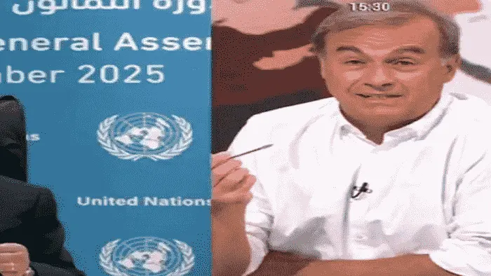 Aquí afirmando que la ONU es "cómplice de Hamás"