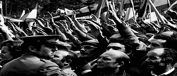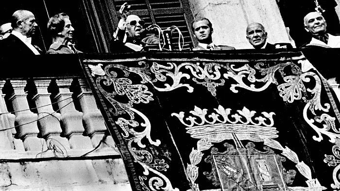 En respuesta, el régimen convocó a los fieles del Caudillo a la Plaza de Oriente el 1 de octubre. Desde el balcón central del Palacio Real les recibió Franco en la que sería su última aparición pública, con Juan Carlos de Borbón (su designado heredero) a su lado. En su breve discurso (que apenas se entendía) denunció “la corrupción de determinados países sin orden ni autoridad” sujetos a la “conspiración masónica izquierdista de su clase política, en contubernio con la subversión comunista-terrorista”. El discurso concluyó con el “¡Arriba España!” de rigor y el constipado que le llevaría a la cama, el hospital y la tumba.