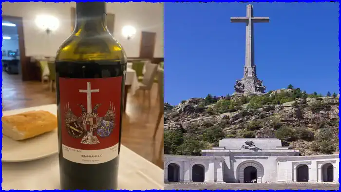 Los actos de enaltecimiento del franquismo, más o menos explícitos, no ocurren sólo en la basílica. En el comedor de la hospedería que regentan en el Valle de los Caídos, un edificio que también pertenece al Estado, utilizan elementos de exaltación del franquismo que van desde las servilletas hasta la botella de vino cuya fotografía se adjunta, que incluye en su etiqueta el escudo personal del dictador Francisco Franco; un escudo que enaltece al responsable de miles de violaciones de derechos humanos, del que miles de desaparecidos permanecen en las cunetas todavía hoy, y celebra el dolor y la violencia que padecieron sus víctimas como un beneficio para nuestra sociedad.