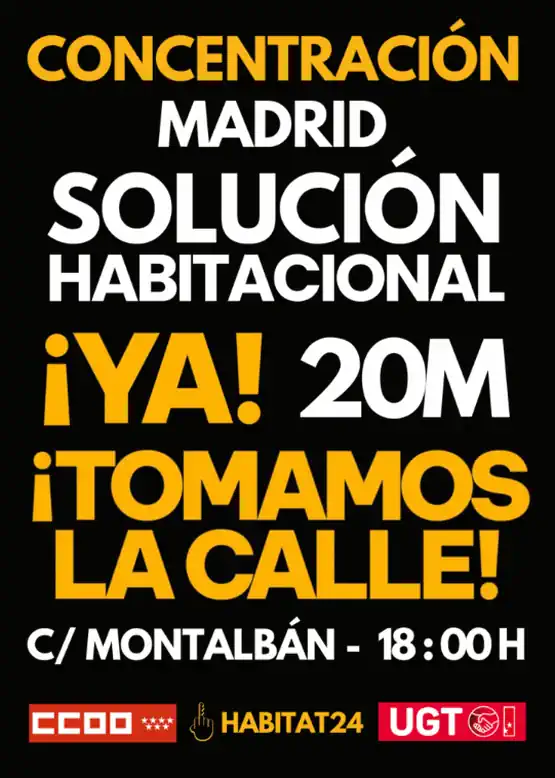 Ante esto, UGT, CCOO y la plataforma Hábitat 24 exigen al Ayuntamiento de Madrid más vivienda protegida, atención y reconocimiento a las familias afectadas por la venta de viviendas de la EMSV y solución habitacional para todas aquellas que lo necesiten.