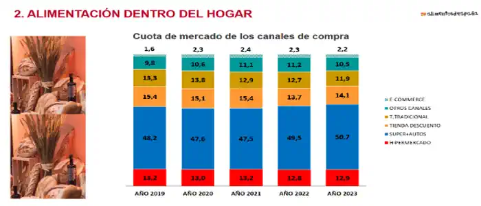 Sin embargo, dicha polémica parece algo artificial, pues todos podemos percibir el retroceso de este modelo de negocio y los datos así lo muestran. Según el «Informe del consumo alimentario en España 2023», del Ministerio de Agricultura, Pesca y Alimentación, la compra de las familias de productos alimenticios en tiendas tradicionales, donde se incluirían los mercados, no deja de caer, tuvo en 2019 un 13,3% de cuota de mercado, un 13,8% en 2020 (algunas cosas aprendimos en la pandemia, pero luego se nos olvidaron rápido), un 12,9% en 2021, un 12,7% en 2022 y un 11,9% en 2023. Mientras, la cuota de mercado de los super e hipermercados ha pasado del 61,40% en 2019 al 63,60% en 2023, lo que muestra cómo este modelo va sustituyendo al del comercio tradicional, dadas las diferencias en volumen de negocio, que impiden al pequeño competir en precio, en horario de apertura, cuando éste no está limitado, en variedad…
