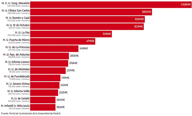 Los hospitales de Madrid que más contratos menores adjudicaron