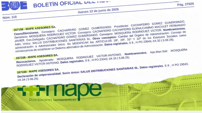 Tal y como confirma Cachafeiro, Mape ha pasado a tener como máxima accionista a la gestora vasca de capital riesgo ABE Capìtal Partners, a través de una empresa de reciente creación que figura como administradora única, Salus Distribuciones Sanitarias SL.